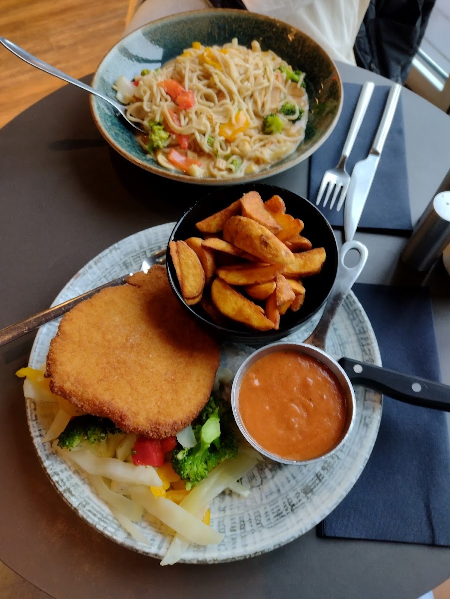The menu at Cafe A is thoughtfully curated, catering to diverse tastes—from meat lovers to vegetarians. For those with a penchant for hearty fare, the Cafè A Steak, a grilled steak of tender beef fillet, is a culinary highlight and comes paired with truffle cream potatoes, garniture, and a choice of sauce, all for DKK 229.00. If you fancy something a bit lighter yet equally satisfying, the café also serves a delectable Grillet Kyllingebryst (Grilled Chicken Breast) at DKK 199.00, accompanied by those luscious truffle potatoes that make your taste buds sing.